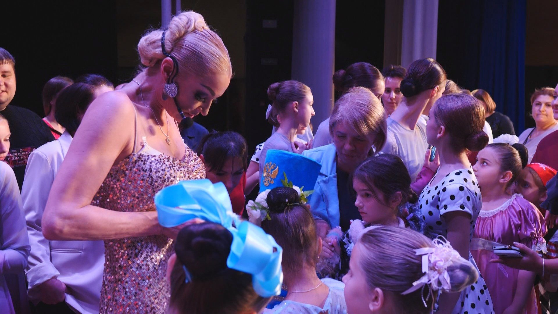 У балерины есть традиция – в каждом городе, где она гастролирует, выступать на сцене с местными творческими объединениями. В Щелкове на сцену с ней вышли ребята из хореографических коллективов «Аленка» и «Танцующие звездочки».