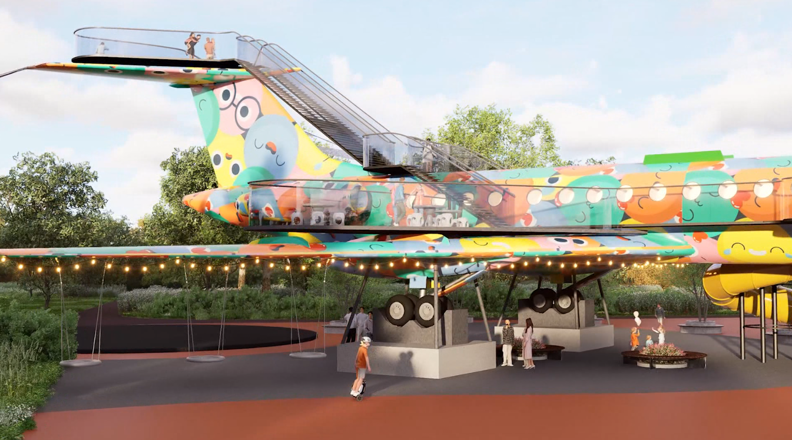 Мы сейчас вышли на реализацию общего мастер-плана самой прогулочной зоны. У нас образовался некий бульвар. Данный самолет будет поднят на 4-4,5 метра, нос его будет выходить в сторону Фряновского шоссе, и непосредственно сам самолет будет перекрашен в очень интересную яркую раскраску.
